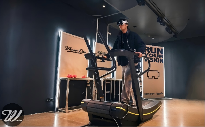 Run Your Vision 是一场将跑步节奏、城市能量与混合现实技术融合的品牌体验。用户佩戴 Apple Vision Pro,站上跑步机,以自己的步伐驱动赛车在一座 3D 打印的微缩上海城市中前进。