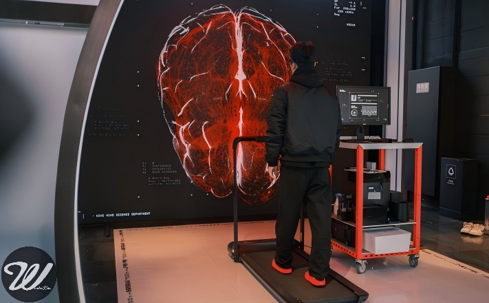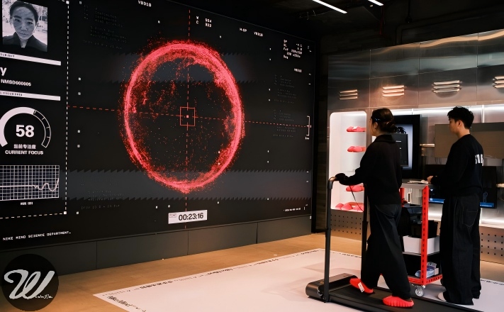 Inside the space, participants step into NIKE MIND footwear and wear an EEG sensing device. As the treadmill begins and movement settles into rhythm, focus is gradually activated. At the end of the experience, each participant receives a personal Focus ID Card.